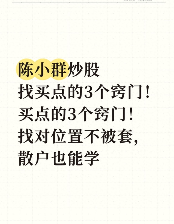 散户炒股最闹心的事中财所,莫过于选对了热门板块,却因为买在高位被套;看着龙头股一路上涨,要么不敢入场错过行情,要么追涨后立刻遭遇回调。短线交易的买点从不是靠运气猜测,游资代表人物陈小群从30万资金做到规模级体量的实战经验里,藏着普通人能直接借鉴的买入逻辑——不靠复杂指标,不赌内幕消息,核心就3个简单易懂的小窍门,既能提高操作的确定性,也能降低盲目跟风的风险。