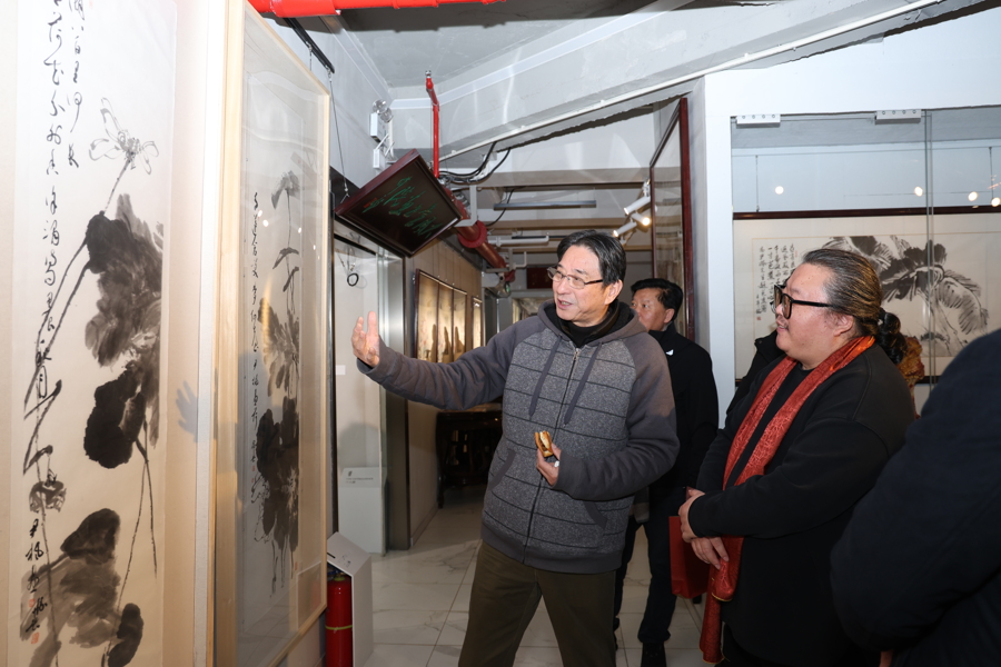 开幕式上海派著名艺术家、上海市文史馆馆员董芷林从艺道传承的角度,阐释了尹枫作品中“以古为新”的内在理路。南开大学书画艺术与美学研究院院长、中国艺术研究院写意画院常务副院长尹沧海进一步从美学与创作实践层面,解读了尹枫写意精神在当代语境中的转化与拓展。